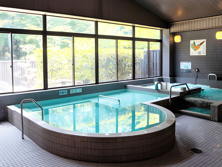 水深1メートルの温泉浴をはじめ、[熱気浴サウナ]、 塩を全身に塗って発汗を即す美肌効果抜群の[ソルティーサウナ]、 体の側面よりジェット噴流があたり、脇、太股、膝などにマッサージ効果のある[ローリングバス]、 どんな人でも浮き上がる?!全身浮き上がりマッサージ効果の[うきうきぶろ]、 [かたたたき]、[エステバス]、[ドリームバス]、[水風呂]、[露天風呂]があり、おこさまからご年配の方までお楽しみいただけます。