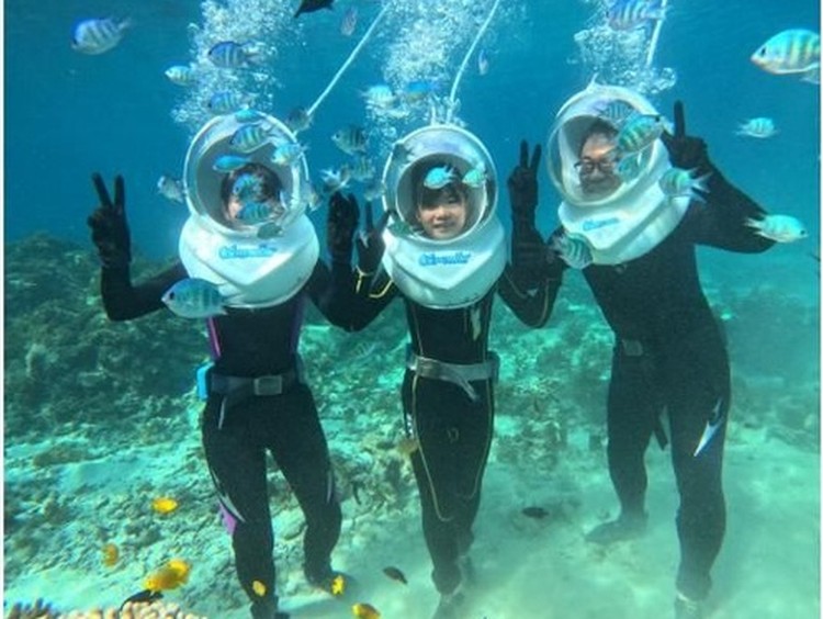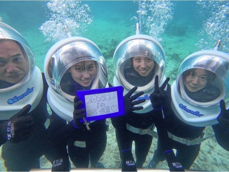 《石垣島で海中散歩!》ボートで行くシーウォーカー、顔が濡れない、泳げなくても安心、女性にもおすすめ!(送迎無料&写真データプレゼント)