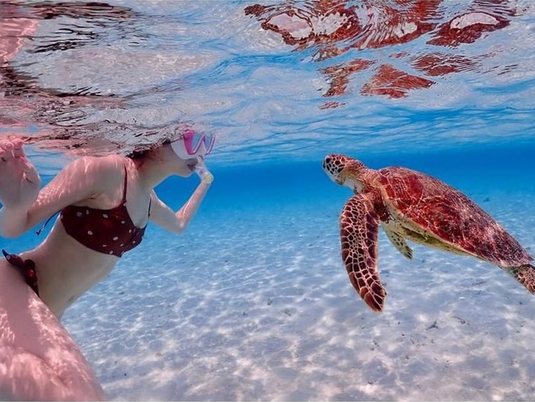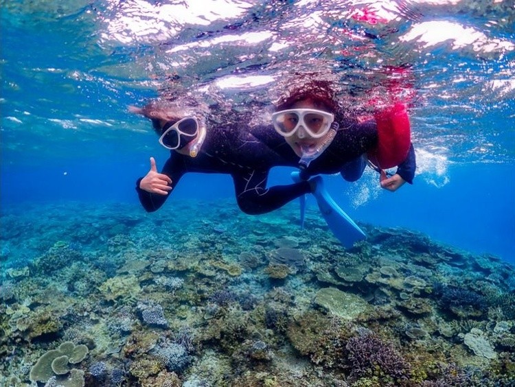 【大人気の八重干瀬(やびじ)】地元船長と行く!国内最大級のサンゴ礁でウミガメと泳ぐツアー(ドローン撮影込み)